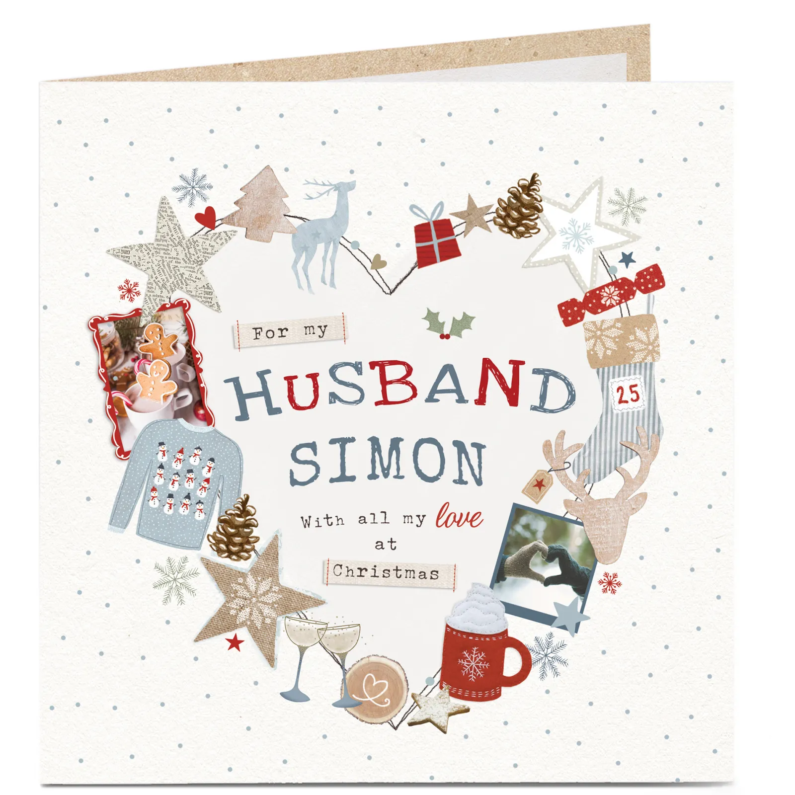 Sale Personalised Christmas Card – Festive Heart Husband Premium Square|Christmas