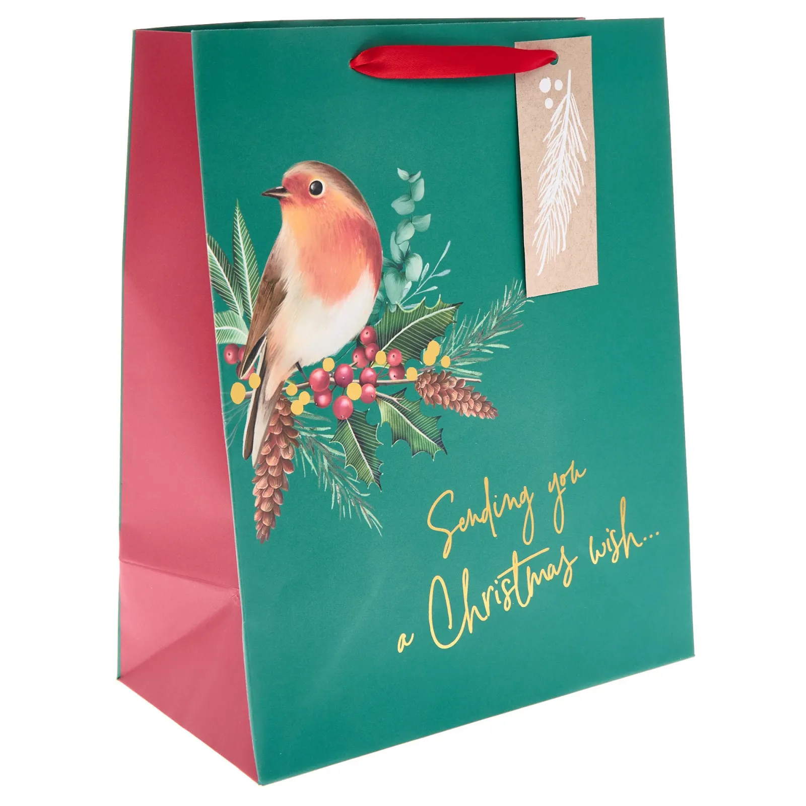 Card Factory Green Robin Large Portrait Christmas Gift Bag