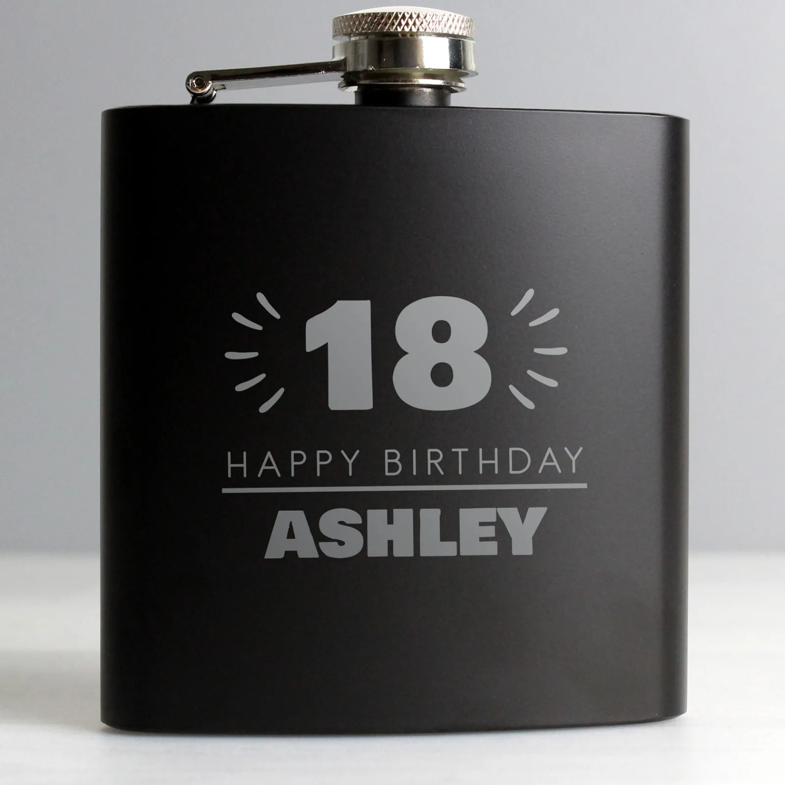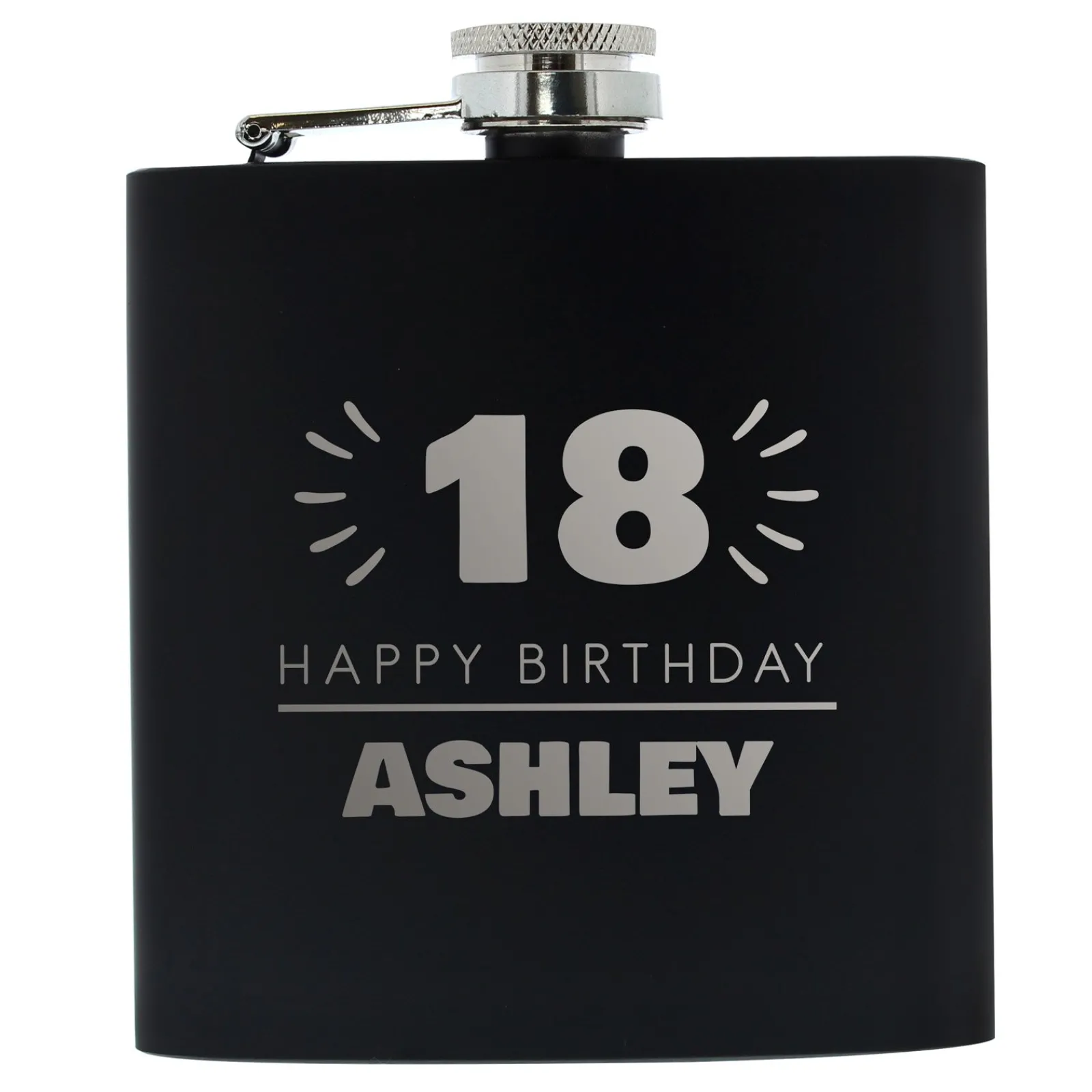Card Factory Personalised 18th Birthday Hip Flask – Black & Silver