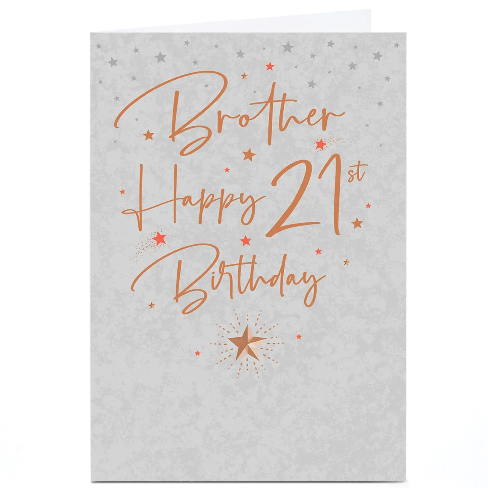 Card Factory Personalised 21st Birthday Card – Silver Stars and Gold Script, Brother