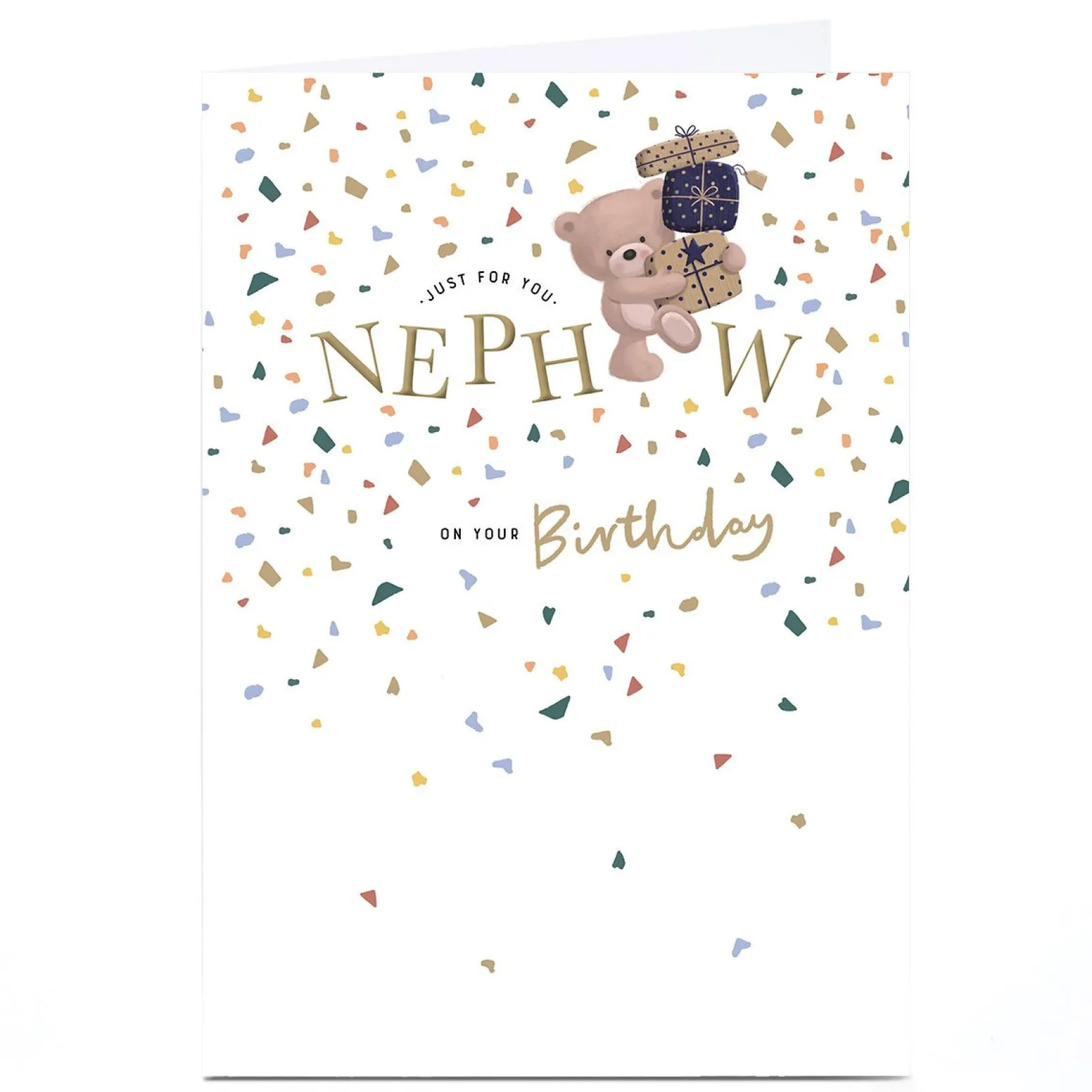 Card Factory Personalised Birthday Card – Bear With Confetti Sprinkles, Nephew