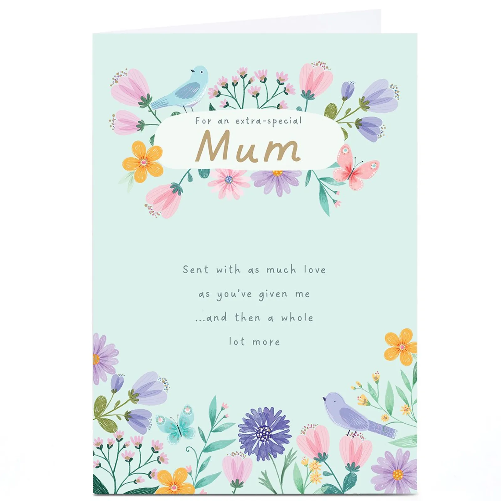 Card Factory Personalised Birthday Card – Spring Flowers and Birds, Mum