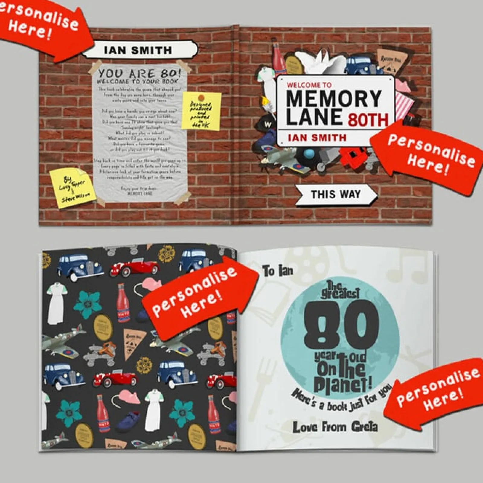 Card Factory Personalised Book – Memory Lane 80th Birthday