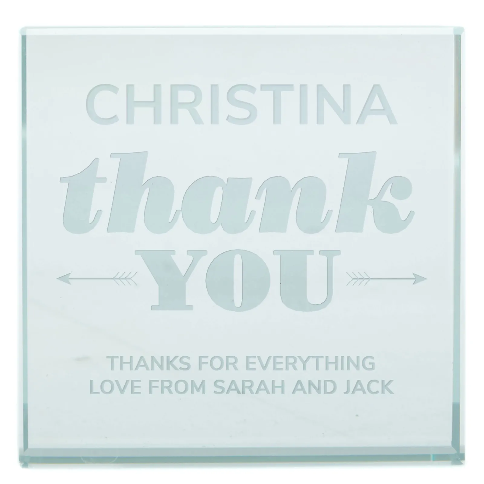 Card Factory Personalised Engraved Glass Token – Thank You Arrows