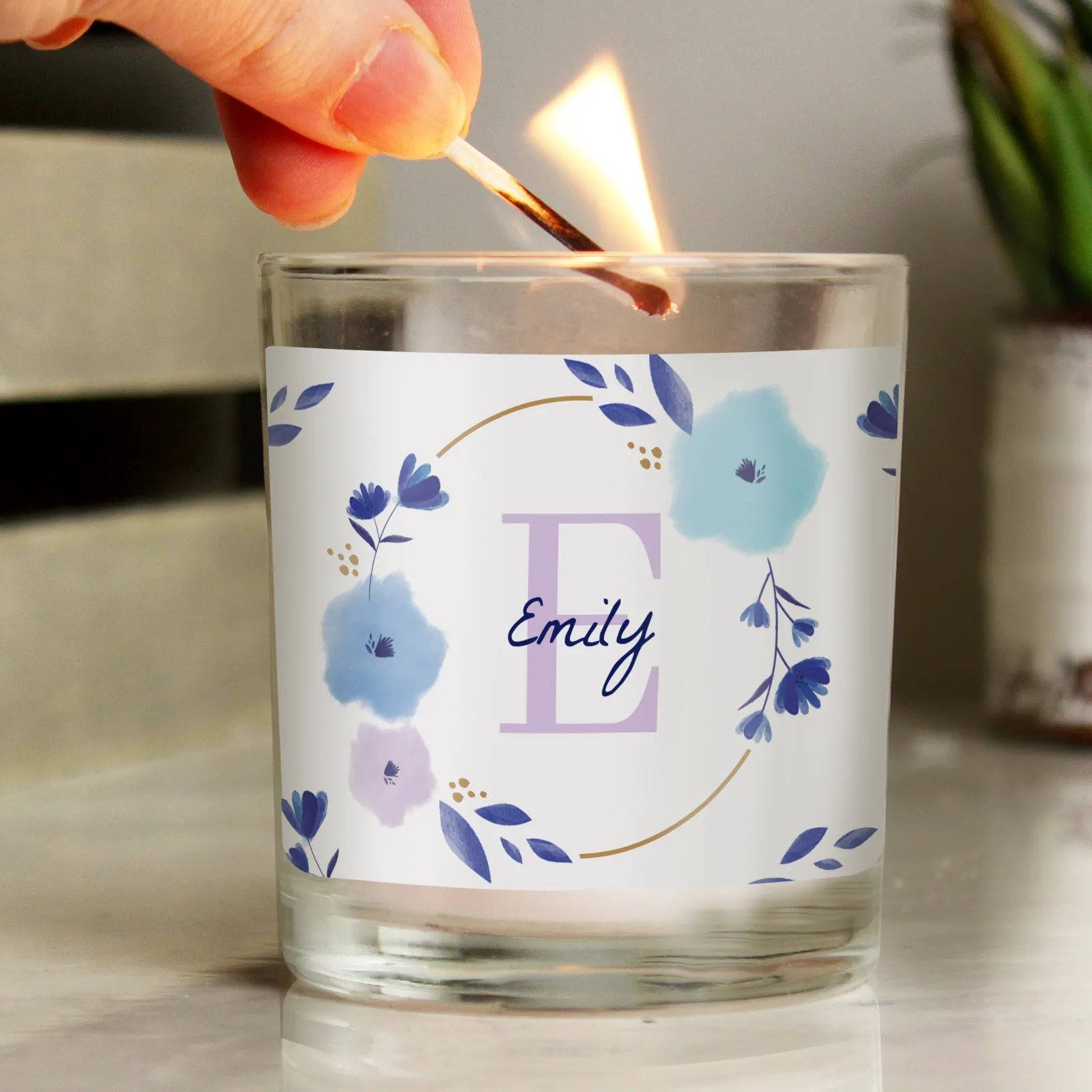 Card Factory Personalised Floral Initial Small Candle Jar