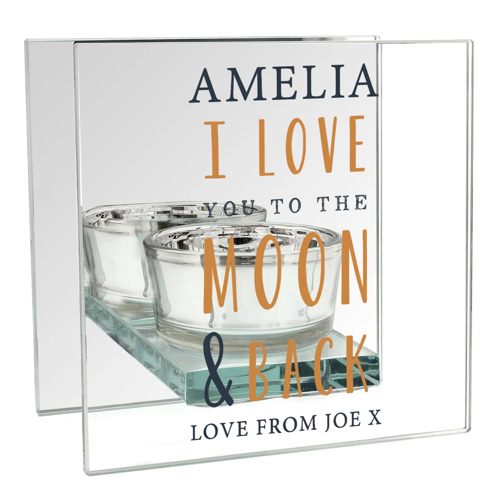 Card Factory Personalised Glass Square Candle Holder – To The Moon & Back