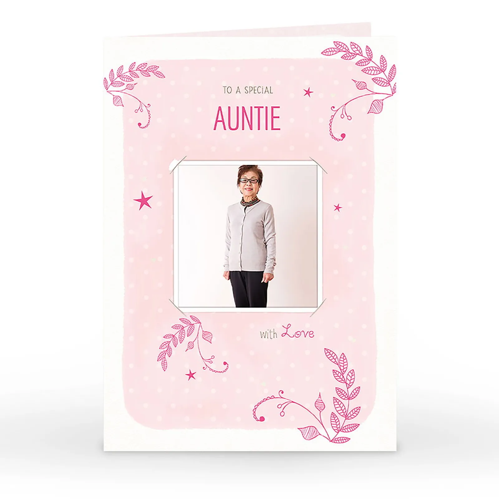 Card Factory Photo Birthday Card – Auntie, Pink Leaves