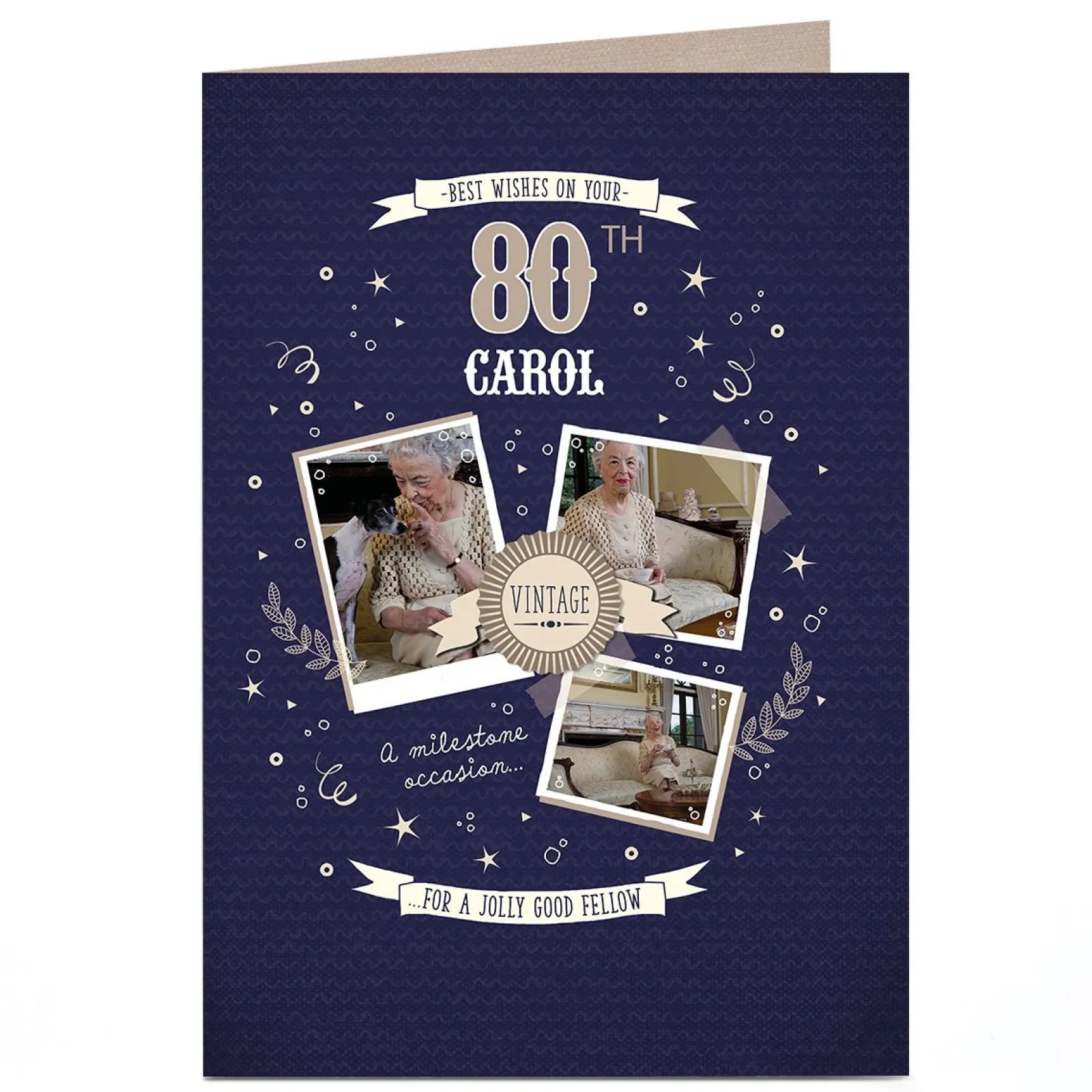 Card Factory Photo Birthday Card – Vintage Badge, Editable Age