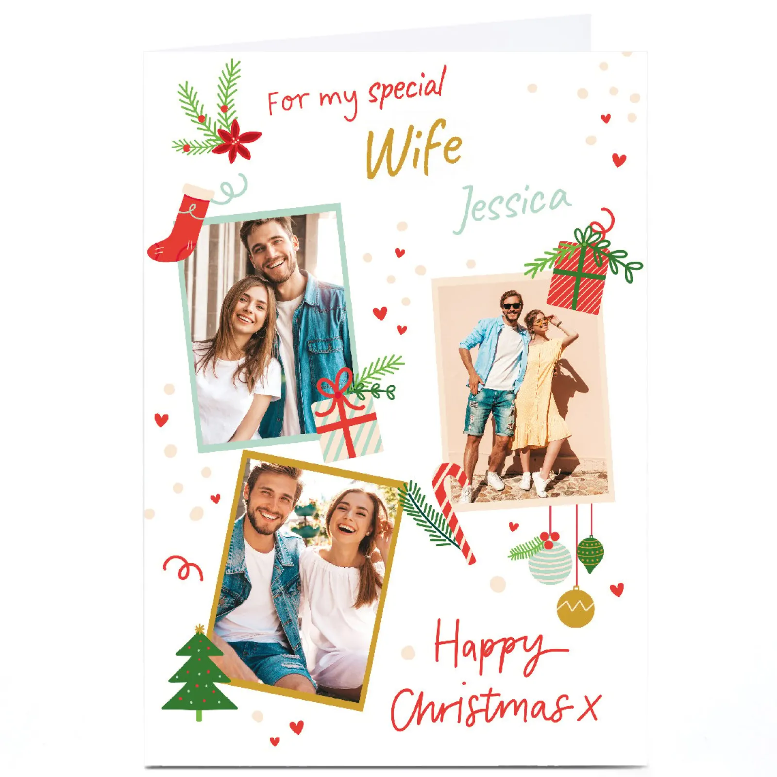 Card Factory Photo Christmas Card – 3 Photos Happy Christmas Illustrations, Wife