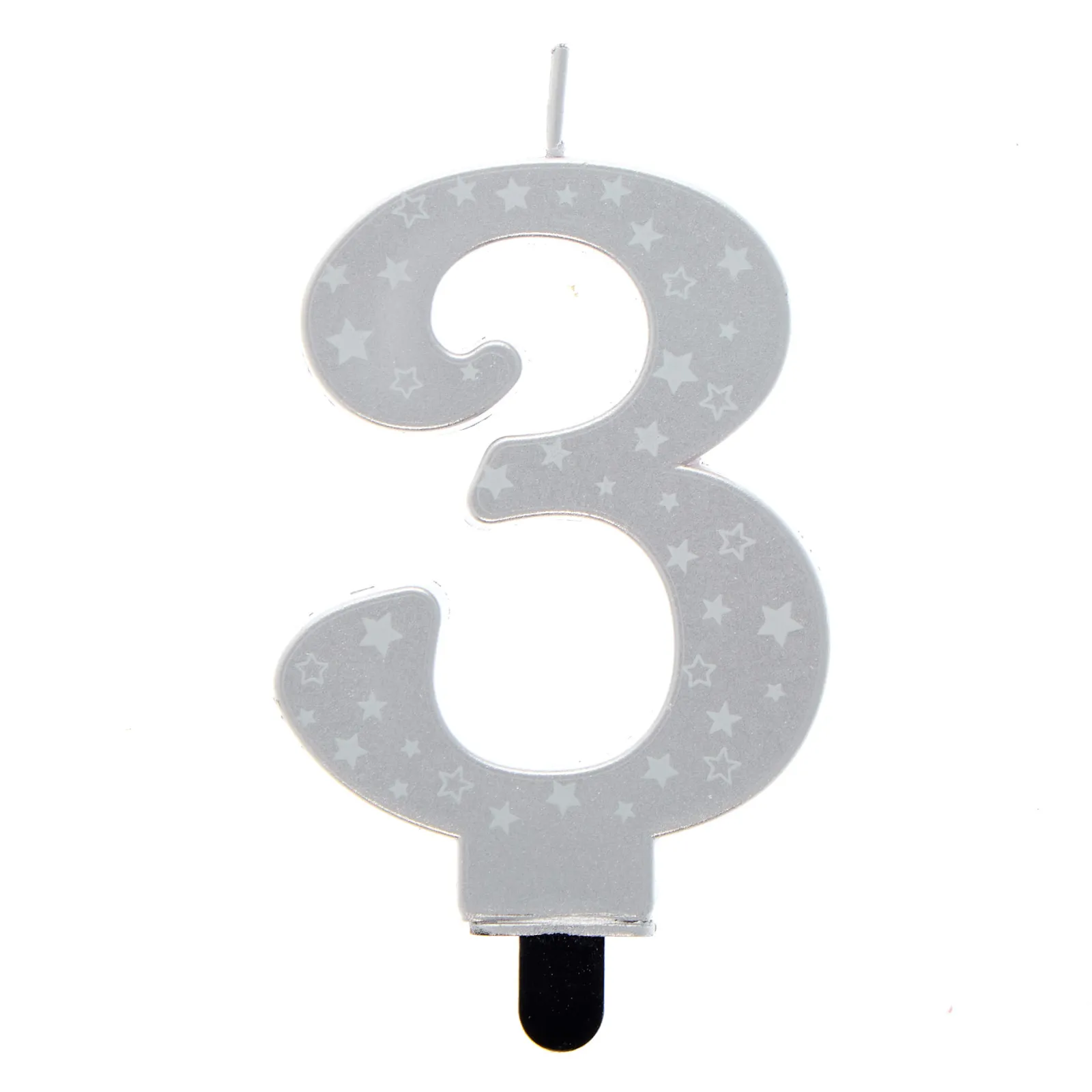 Card Factory Silver Starry Number 3 Cake Candle