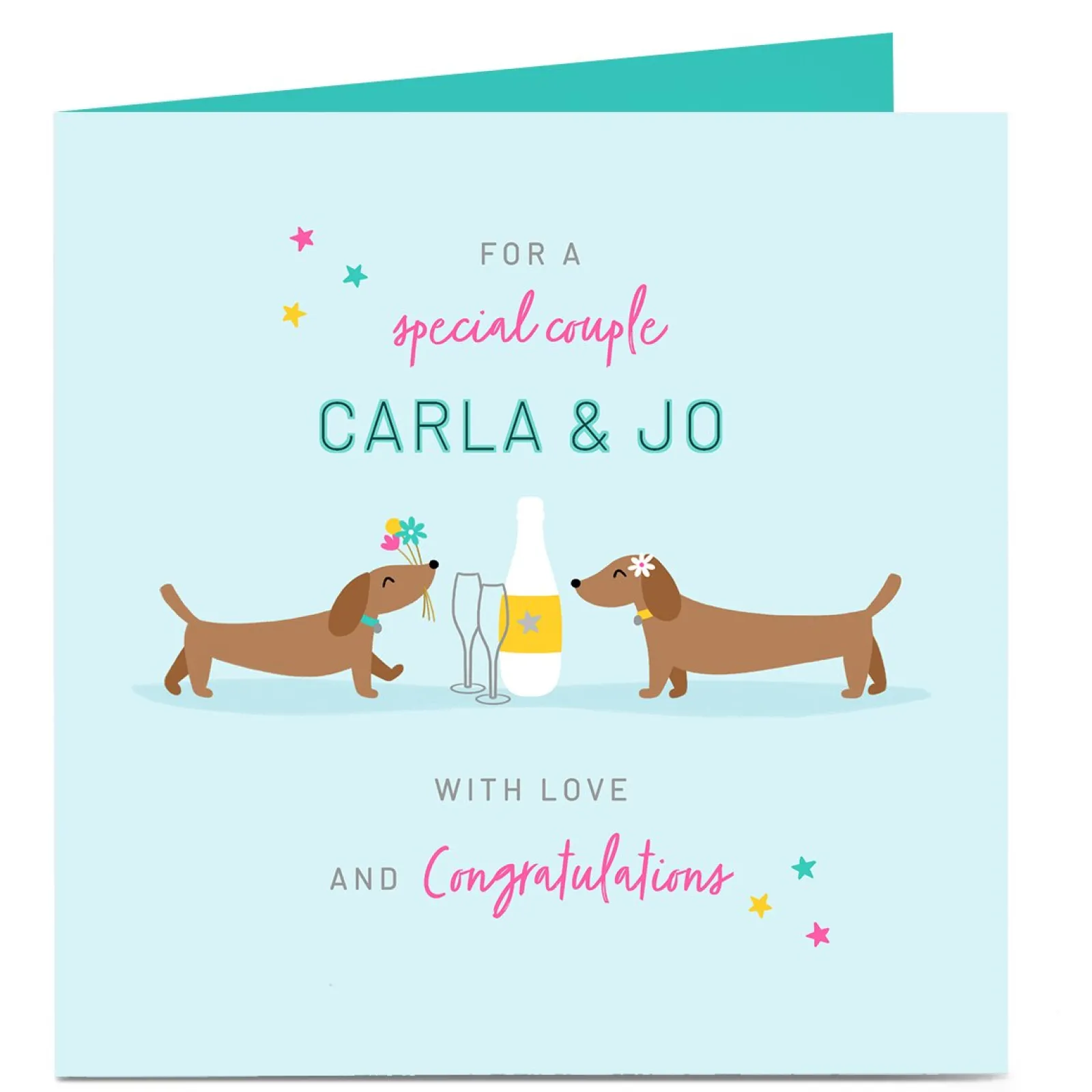 Clearance Personalised Congratulations Card – Sausage Dog Couple Premium Square|Wedding