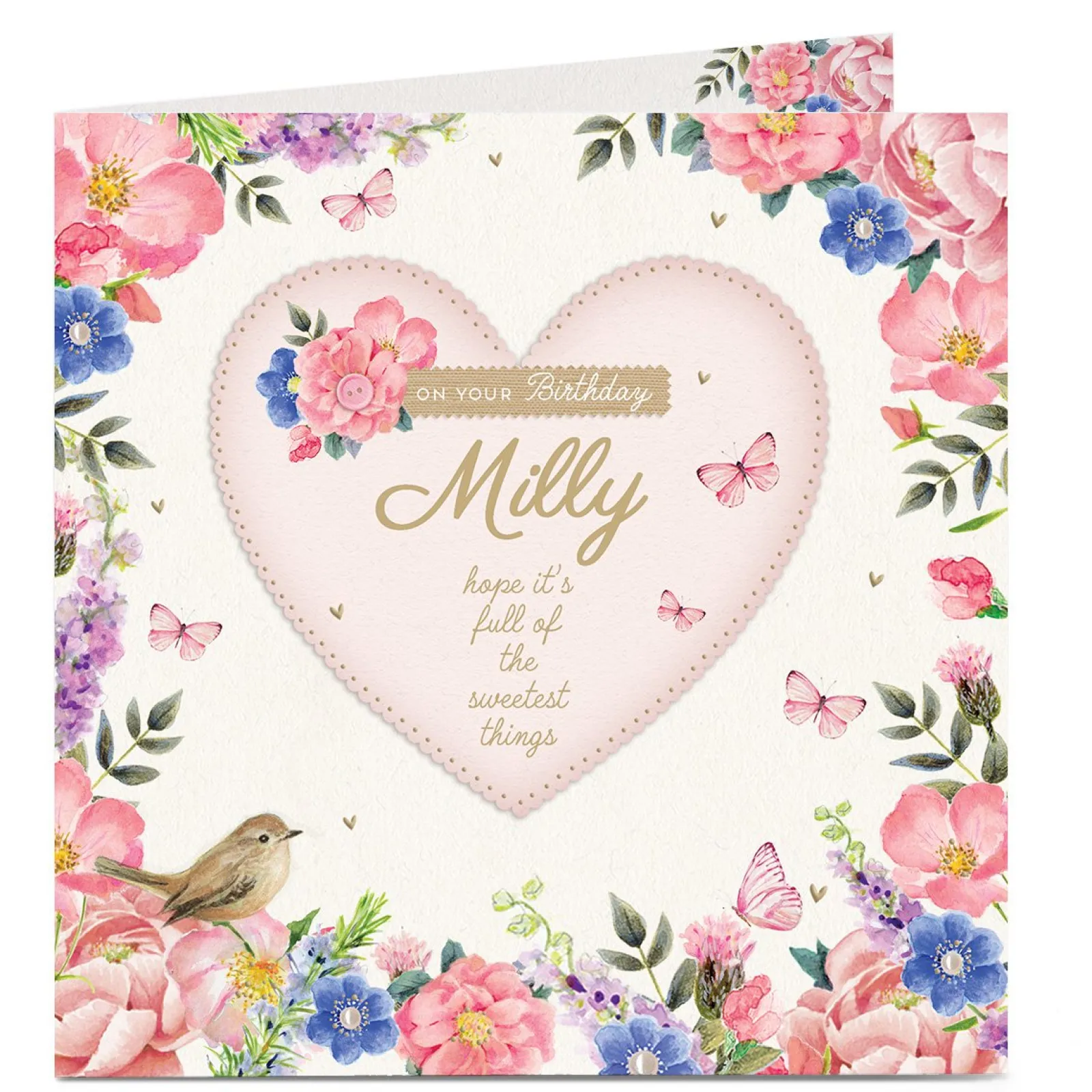 Discount Personalised Birthday Card – Embroidered Heart Premium Square|Birthday