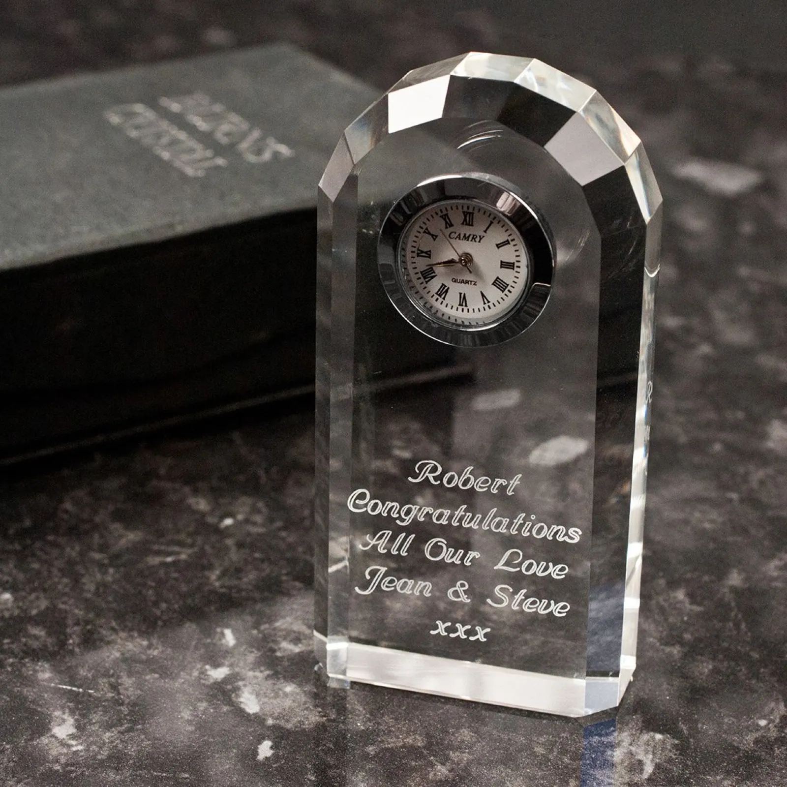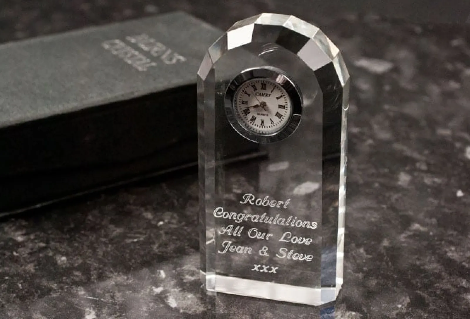 Engraved Crystal Clock Jewellery & Keepsakes|Anniversary Gifts