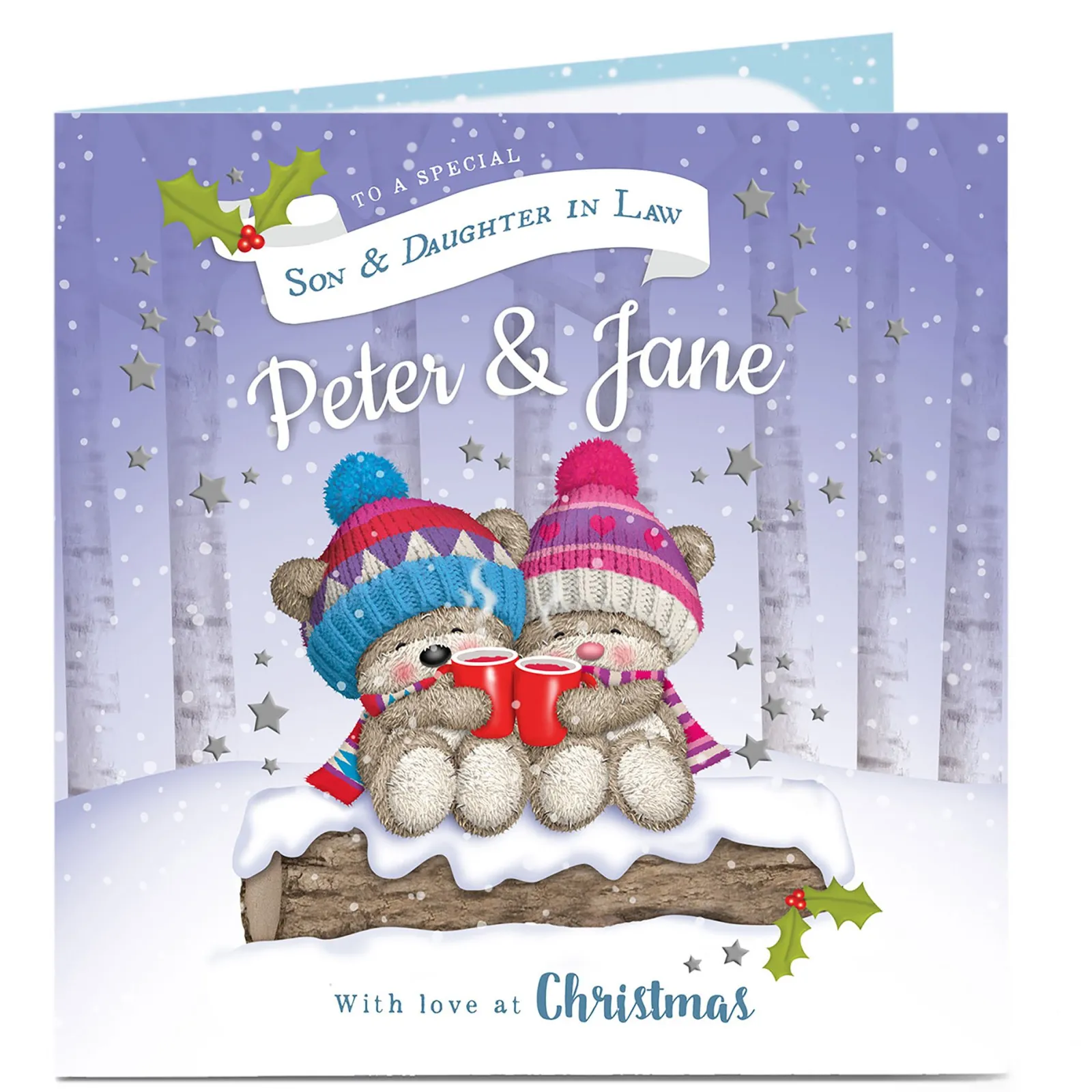 Hot Hugs Personalised Christmas Card – Bear Snow Couple Premium Square|Christmas