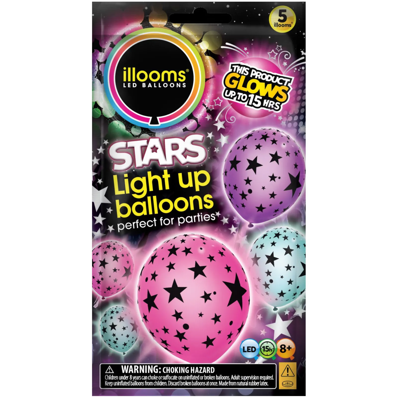 Kids Card Factory Latex Illooms Starry Light-Up Balloons – Pack of 5