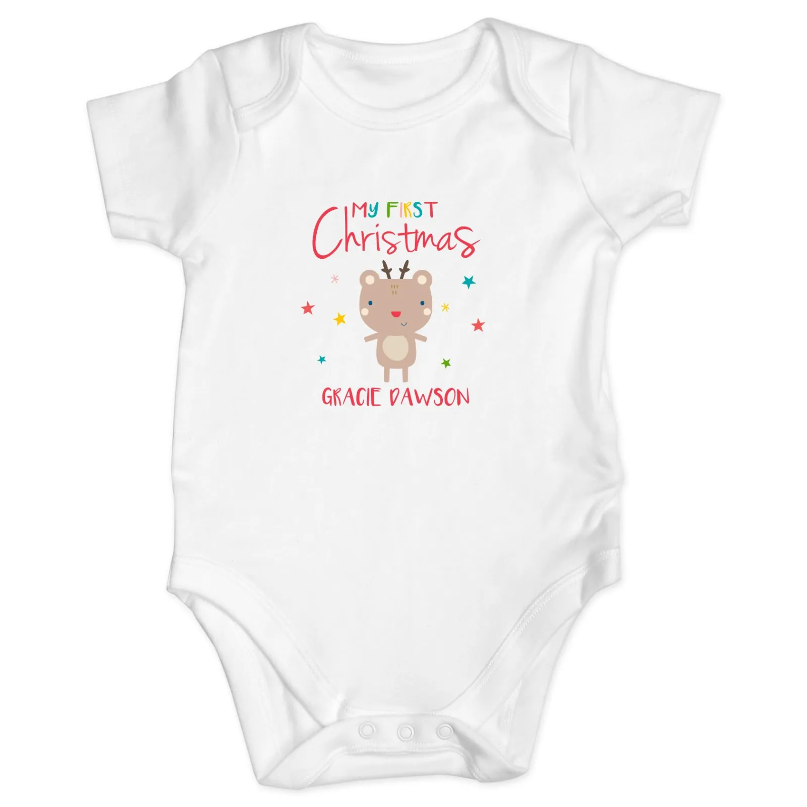 Kids Card Factory Personalised Baby Onesie – My First Christmas Reindeer