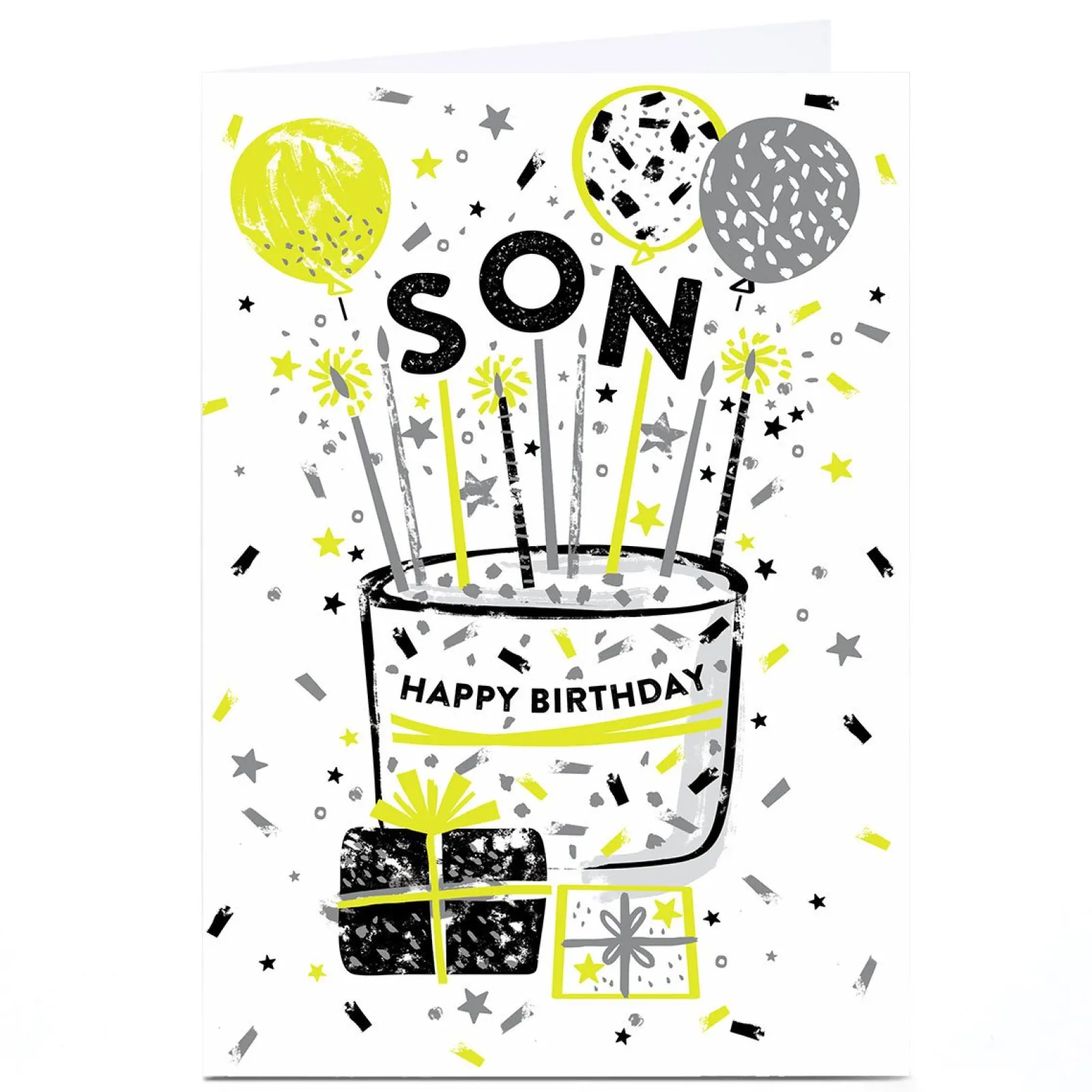 Kids Card Factory Personalised Birthday Card – Neon Accents Cake and Balloons, Son
