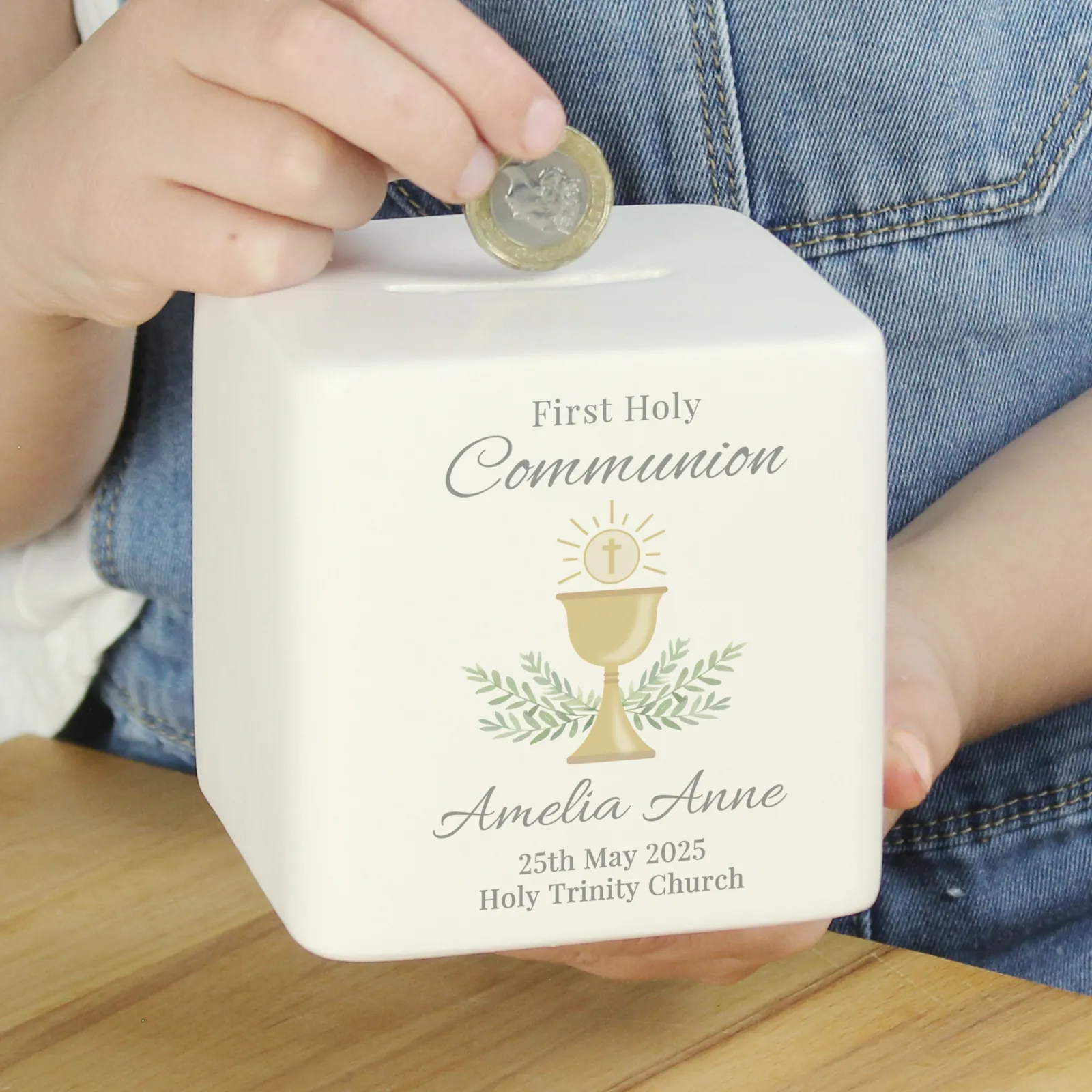 Kids Card Factory Personalised First Holy Communion Ceramic Square Money Box