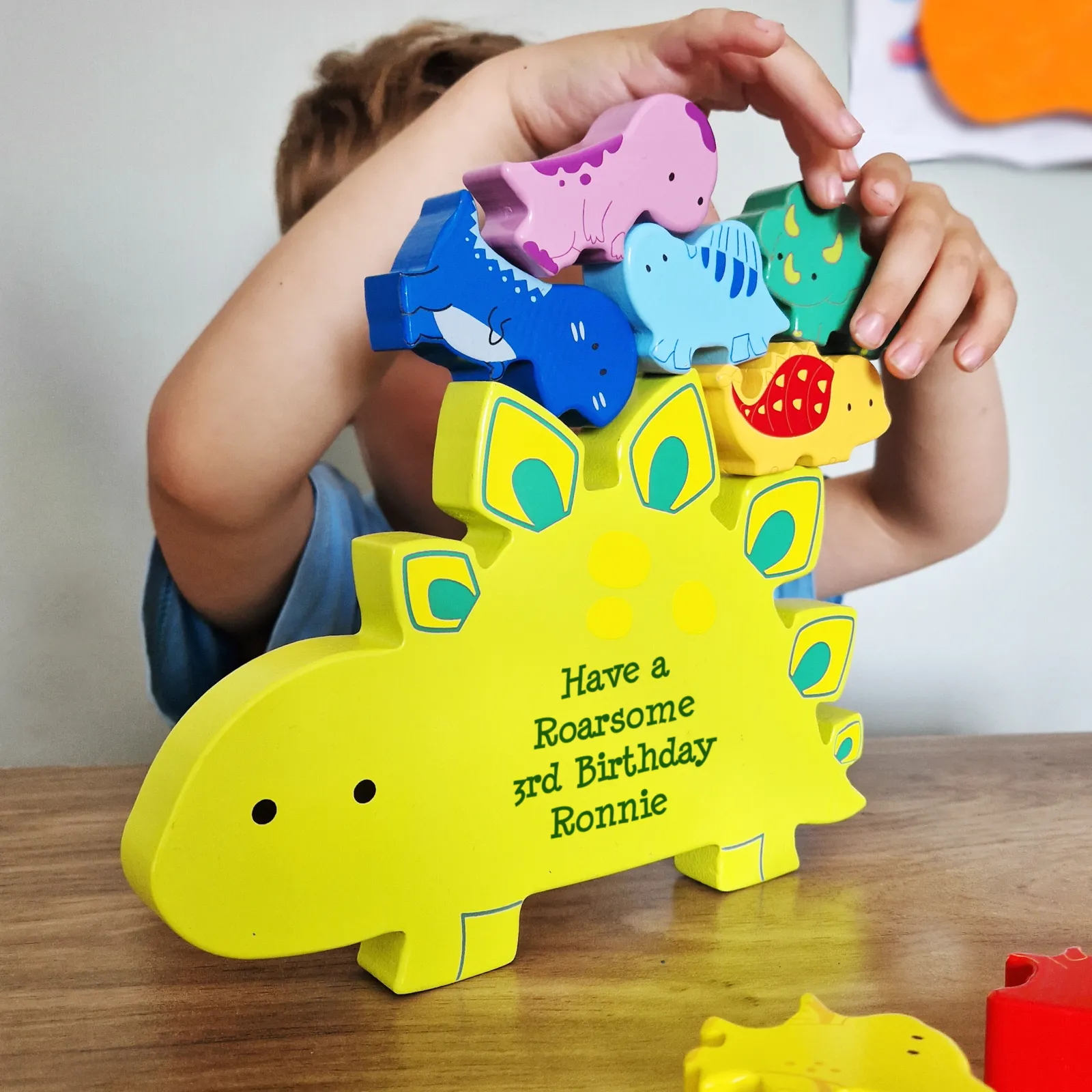 Kids Card Factory Personalised Wooden Dinosaur Stacker Toy