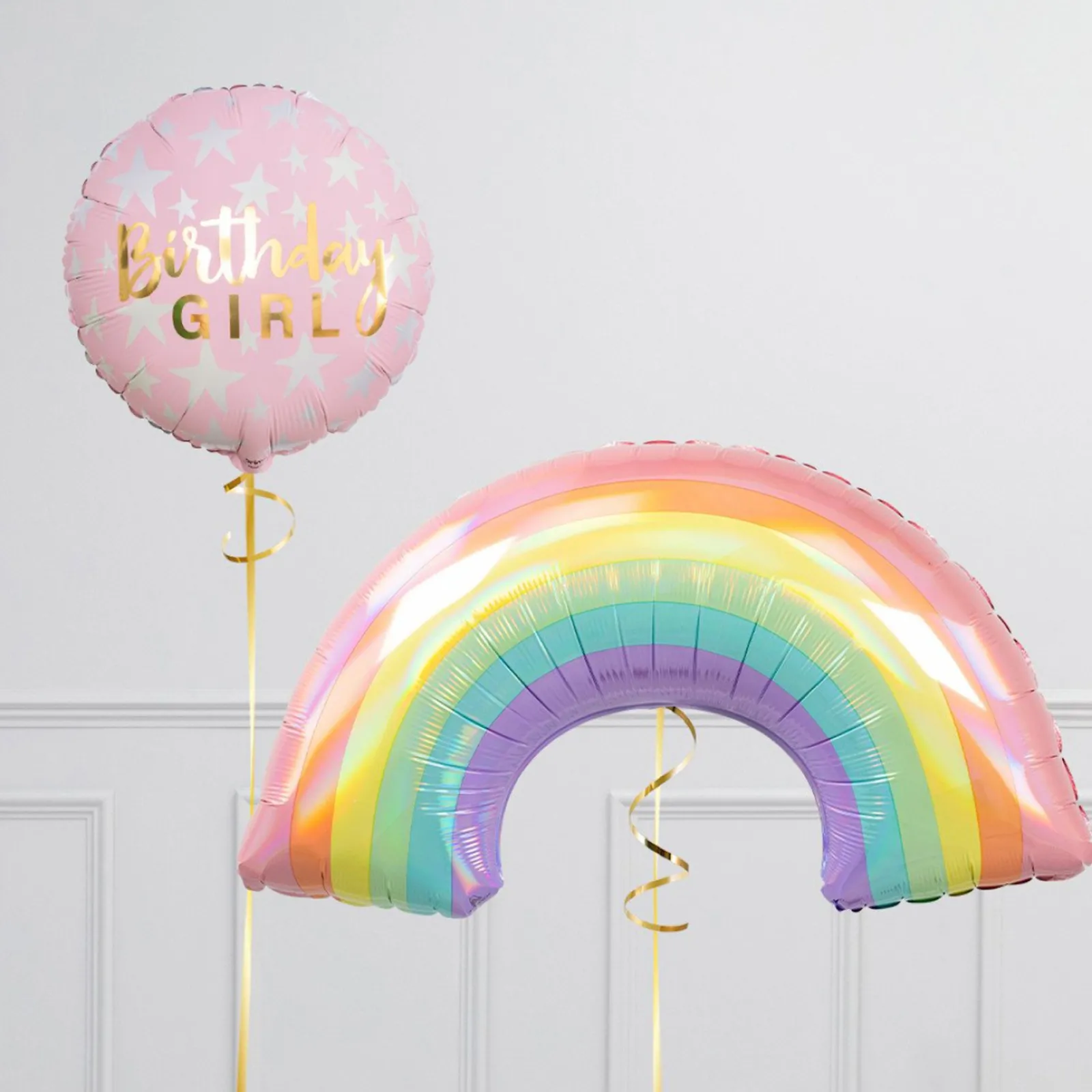 Kids Card Factory Rainbow Birthday Girl Supershape & Foil Balloon Package – Delivered Inflated!