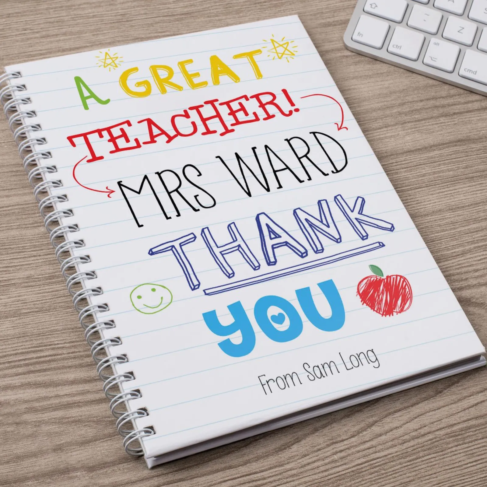 - Personalise the front of the notebook with your message & photos