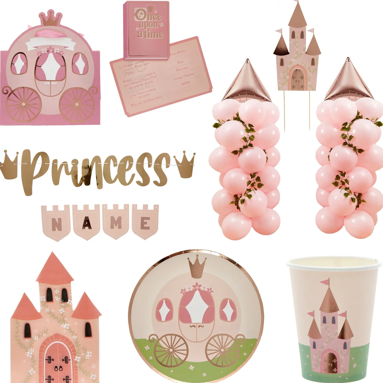Online Pink Princess Party Tableware & decorations Bundle – 8 Guests Tableware|Birthday Party
